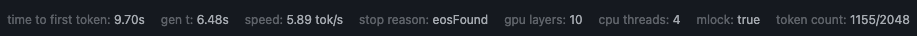 The tps (tokens per second), and ttft (time to first token) are probably a bit slower than running the model on better hardware, but not too shabby for a 4gb model running on a 4 year old M1 MBP!