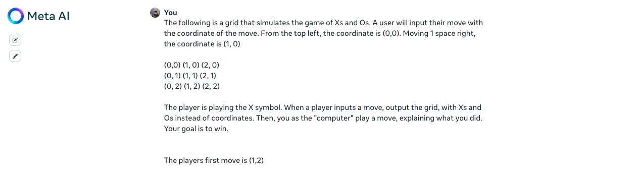 My first converastion skipped the pleasantries and we got straight into a game of X's and O's. I was surprised by the inference speed it seemed to have out of the gate.